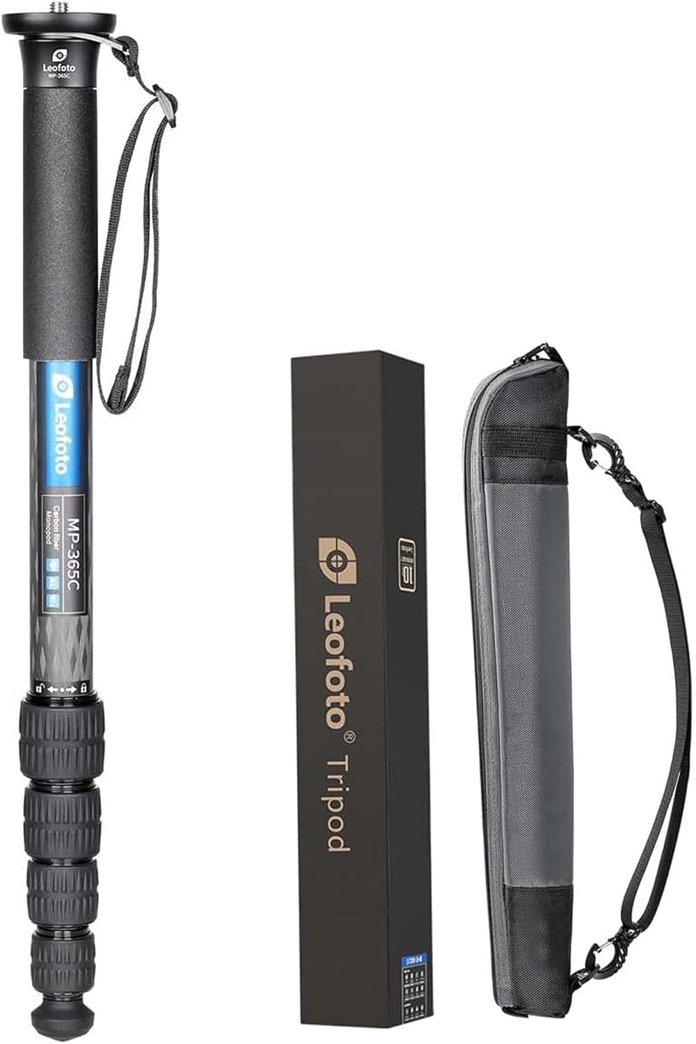 The Leofoto MP Series Carbon Fiber Monopods have options from four to six section camera supports with maximum heights ranging between 60 inches to 69 inches. The monopods are constructed with a 10-layer toray, carbon fiber weave and designed to be sturdy. Featuring a durable rubber grip and wrist strap for security, the MP Series monopod is capable of supporting cameras with large telephoto lenses. The rubber foot prevents it from sliding on smooth surfaces, but is also removable and can be replaced with a separately available steel claw, spike, or other Leofoto accessory to facilitate the best traction for any given terrain. When not in use, turn the ergonomic twist leg locks to collapse the support down and pack it in the included carrying case. The threaded mounting stud on the top of the monopod features a convertible 1/4"-20 and 3/8"-16 screw, making it universal for most cameras and lenses.